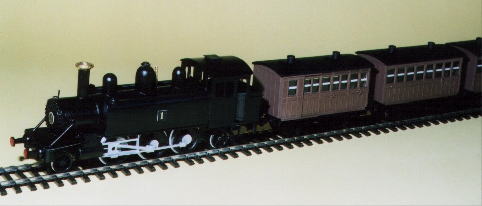 マッチ箱客車(プラキットの改造)を牽く奈良鉄道1号機関車