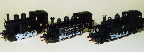 左より北丹鉄道、阪鶴鉄道、奈良鉄道の1号機関車