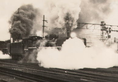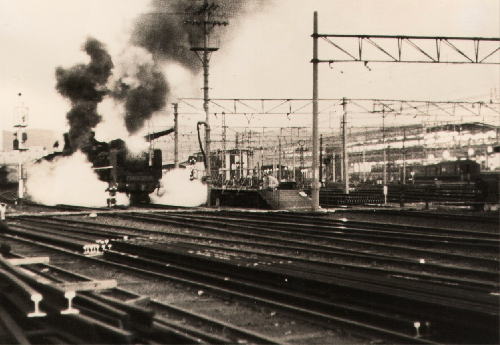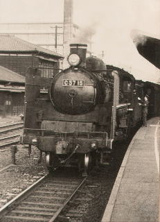 C57形蒸気機関車重連(2輌)が牽く旅客列車が発車
